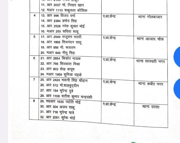रायपुर पुलिस महकमे में 36 जवानों का हुआ तबादला… देखिए लिस्ट