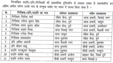 दुर्ग जिले में पुलिस निरीक्षक और उप निरीक्षकों का हुवा तबादला :देखिए पूरी लिस्ट