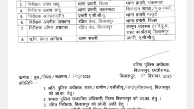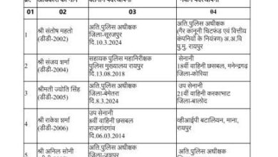 छत्तीसगढ़ शासन के गृह (पुलिस) विभाग ने भारतीय पुलिस सेवा के अधिकारियों के प्रशासनिक फेरबदल के तहत 7 अधिकारियों के…