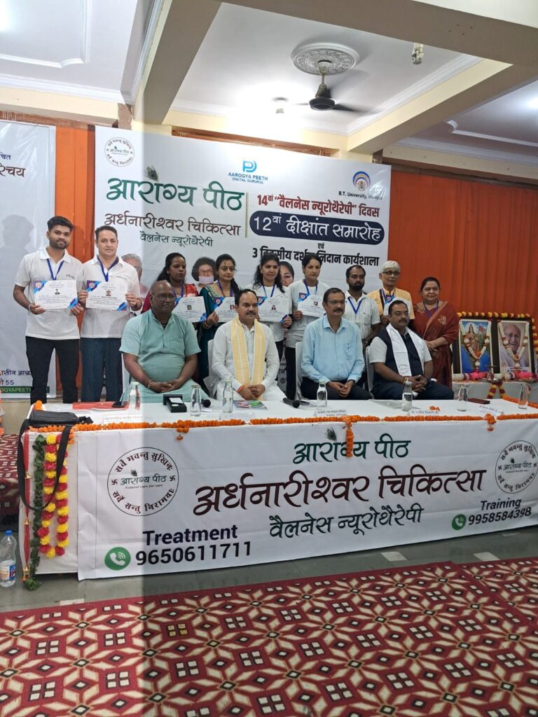 22, 23 व 24 अगस्त 2025 को “आरोग्य पीठ” के तत्वावधान में दिल्ली स्थित श्री गुरु रामराय उदासीन आश्रम, आराम बाग में 14वाँ वेलनेस न्यूरोथेरेपी दिवस एवं 12वाँ दीक्षांत समारोह का भव्य आयोजन हुआ। इस अवसर पर देशभर से 200 से अधिक प्रतिभागियों ने भाग लिया।