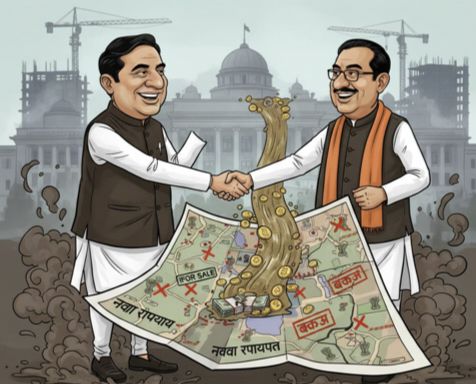 रायपुर: नवा रायपुर में जमीन की खरीद-बिक्री पर लगी आधिकारिक रोक के बावजूद बड़े पैमाने पर विवादास्पद भूमि सौदों का खुलासा हुआ है। इस मामले ने राजनीतिक गलियारों में हलचल मचा दी है, और सबकी निगाहें अब एक नए ‘नेक्सस’ पर टिकी हैं।