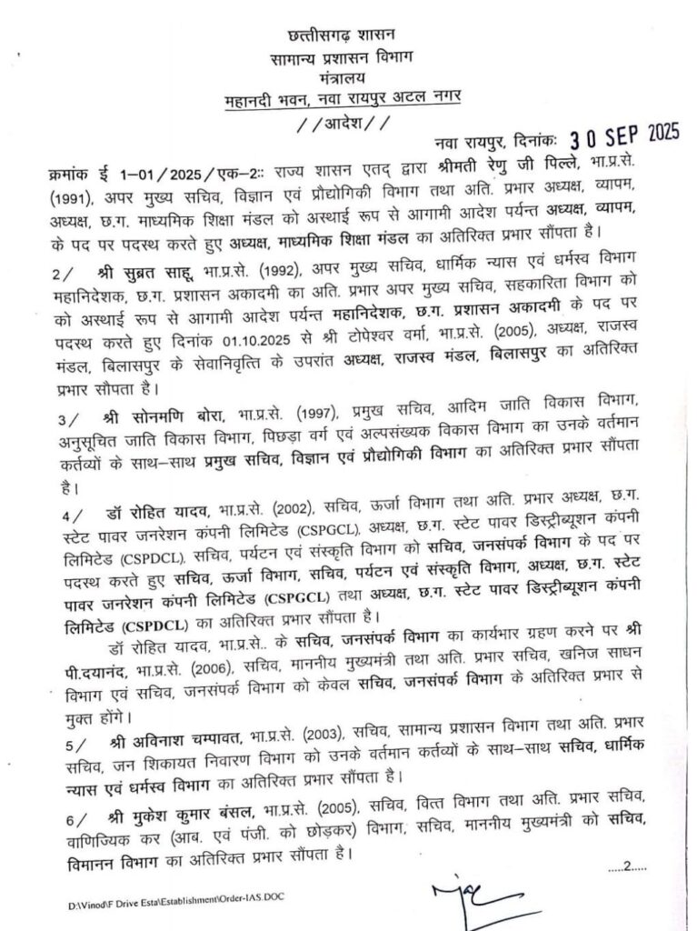 Home/छत्तीसगढ़/छत्तीसगढ़ शासन द्वारा बड़े पैमाने पर शीर्ष नौकरशाही में फेरबदल ,कई वरिष्ठ और युवा IAS अधिकारियों को अहम जिम्मेदारियां :देखे पूरी सूची छत्तीसगढ़तबादलाप्रशासन छत्तीसगढ़ शासन द्वारा बड़े पैमाने पर शीर्ष नौकरशाही में फेरबदल ,कई वरिष्ठ और युवा IAS अधिकारियों को अहम जिम्मेदारियां :देखे पूरी सूची Kamal Kishore DasLast Updated: September 30, 2025 343 Facebook X LinkedIn Tumblr Pinterest Reddit VKontakte Odnoklassniki Pocket Tags# transfer #awareness #awareness CG #Chattisgarh Kamal Kishore DasLast Updated: September 30, 2025 343 Facebook X LinkedIn Tumblr Pinterest Reddit VKontakte Odnoklassniki Pocket Share Facebook X LinkedIn Tumblr Pinterest Reddit VKontakte Odnoklassniki Pocket Share via Email Print