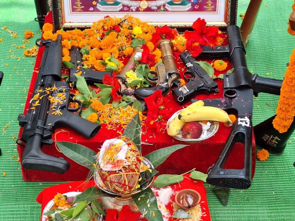 बिलासपुर वरिष्ठ पुलिस अधीक्षक द्वारा विजय दशमी के अवसर पर की गयी शस्त्र पूजा