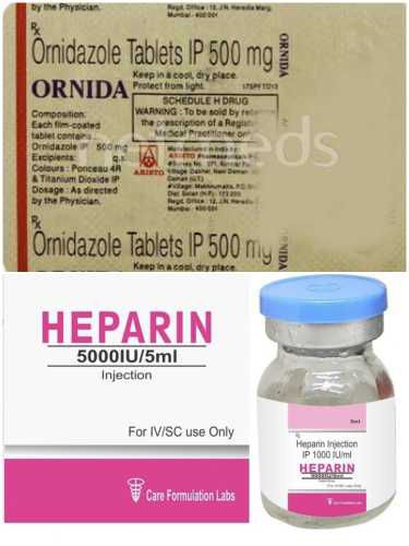 - हेपारिन सोडियम 1000 IU/ml इंजेक्शन IP— यह दवा मेसर्स डिवाइन लेबोरेट्रीज प्रा. लि., वडोदरा (गुजरात) द्वारा आपूर्ति की गई थी। इस इंजेक्शन को भी NABL मान्यता प्राप्त प्रयोगशालाओं के साथ-साथ सेंट्रल ड्रग्स लेबोरेट्री (CDL), कोलकाता में परीक्षण के दौरान अमानक पाया गया।