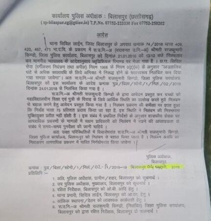 बिलासपुर पुलिस अधीक्षक कार्यालय में पदस्थ स्टेनो बृजबिहारी साहू और लिपिक किंड़ो के खिलाफ करोड़ों रुपये के वित्तीय घोटाले और शासन के आदेश दबाने के गंभीर आरोप सामने आए हैं।शिकायतकर्ताओं ने पूरे मामले की निष्पक्ष जांच और कड़ी कार्यवाही की मांग करते हुए छत्तीसगढ़ उच्च न्यायालय के माननीय मुख्य न्यायाधीश को विस्तृत शिकायत आवेदन भेजा है।