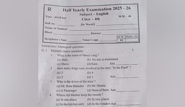 छत्तीसगढ़ के रायपुर के स्कूल में हाल ही में हुई अर्धवार्षिक परीक्षा के एक प्रश्नपत्र ने राज्य के गलियारों से लेकर सोशल मीडिया तक में तूफान खड़ा कर दिया है।रायपुर जिले के तिल्दा विकास खंड के अंतर्गत नक्ती (खपरी)कक्षा चौथी के अंग्रेजी के पेपर में एक सवाल के विकल्प में ‘राम’ (Ram) नाम को कुत्ते के नाम के साथ जोड़ना न केवल एक प्रशासनिक चूक बनी, बल्कि इसने आस्था और अभिव्यक्ति के बीच की एक बारीक लकीर को भी उजागर कर दिया है।