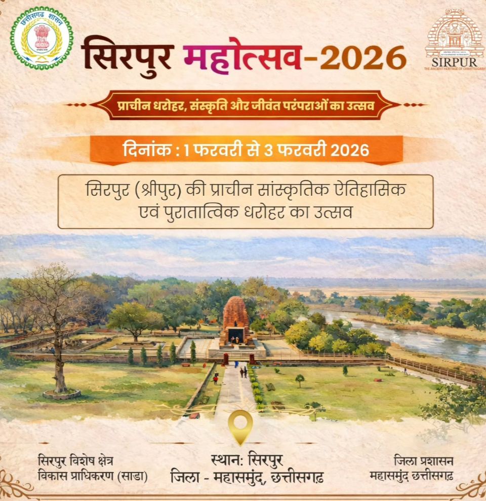 छत्तीसगढ़ की ऐतिहासिक और पावन धरा सिरपुर एक बार फिर इतिहास, संस्कृति और संगीत के अनूठे मेल का गवाह बनने जा रही है। 1 से 3 फरवरी 2026 तक आयोजित होने वाले तीन दिवसीय ‘सिरपुर महोत्सव’ की तैयारियाँ पूरी हो चुकी हैं। इस बार का आयोजन न केवल छत्तीसगढ़ी लोक परंपराओं को समेटे हुए है, बल्कि इसमें शास्त्रीय, सूफी और बॉलीवुड संगीत का ऐसा तड़का लगेगा कि दर्शक मंत्रमुग्ध हो जाएंगे।